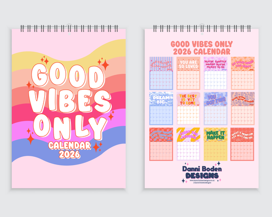 Good Vibes Only - The Positivity 2026 Wall Calendar - A4