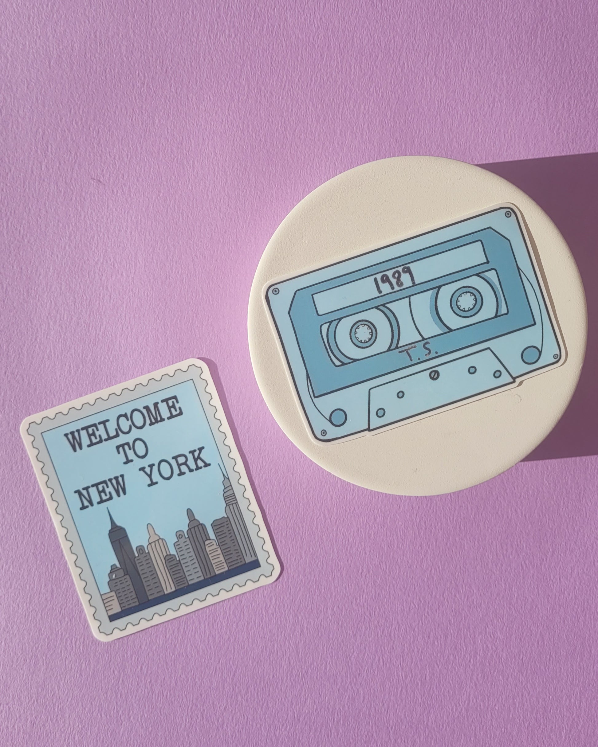 The sticker is a vinyl sticker, that wont fade, can be drawn on top of, is waterproof and resistant to scratches. Medium strength adhesive will stick to most surfaces, will not leave any residue after use. The longest side is 8cm, and shortest 5.3cm for each sticker.