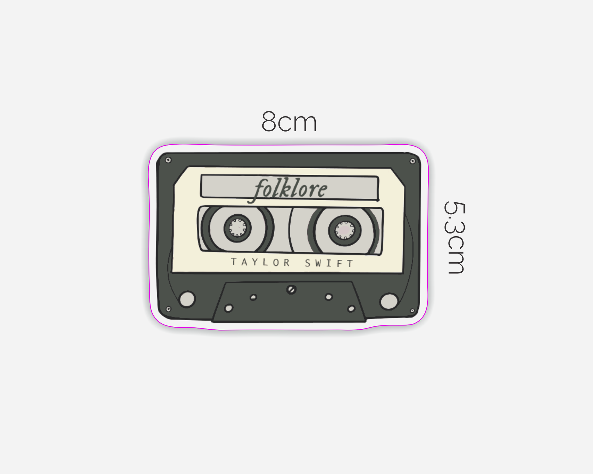 The sticker is a vinyl sticker, that wont fade, can be drawn on top of, is waterproof and resistant to scratches. Medium strength adhesive will stick to most surfaces, will not leave any residue after use. The longest side is 8cm, and shortest 5.3cm for each sticker.