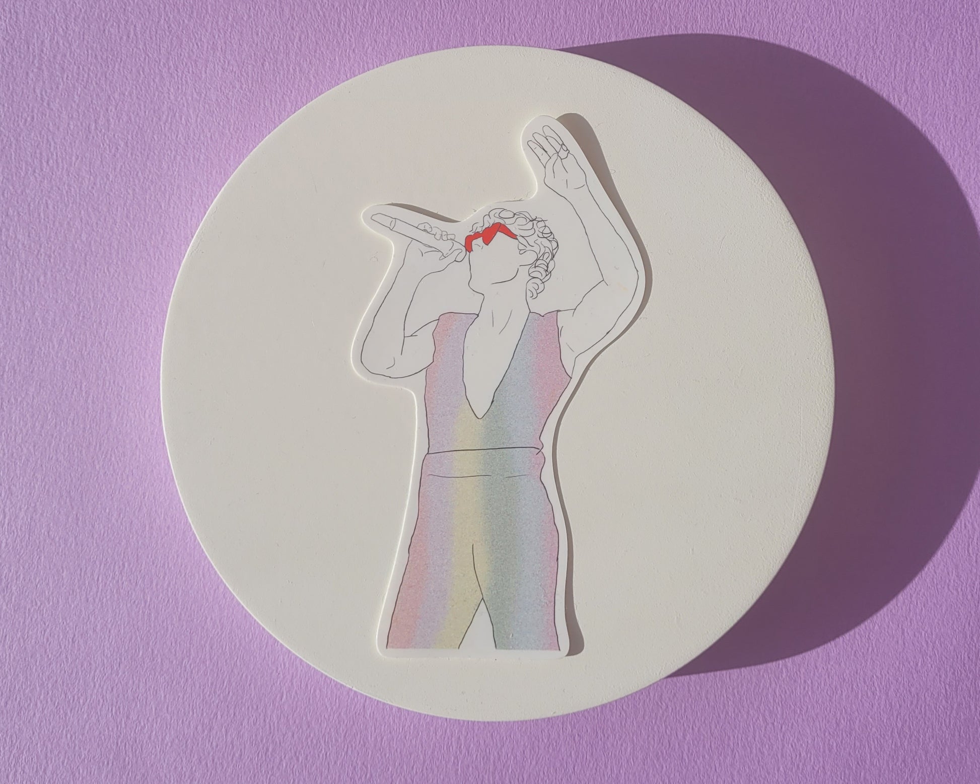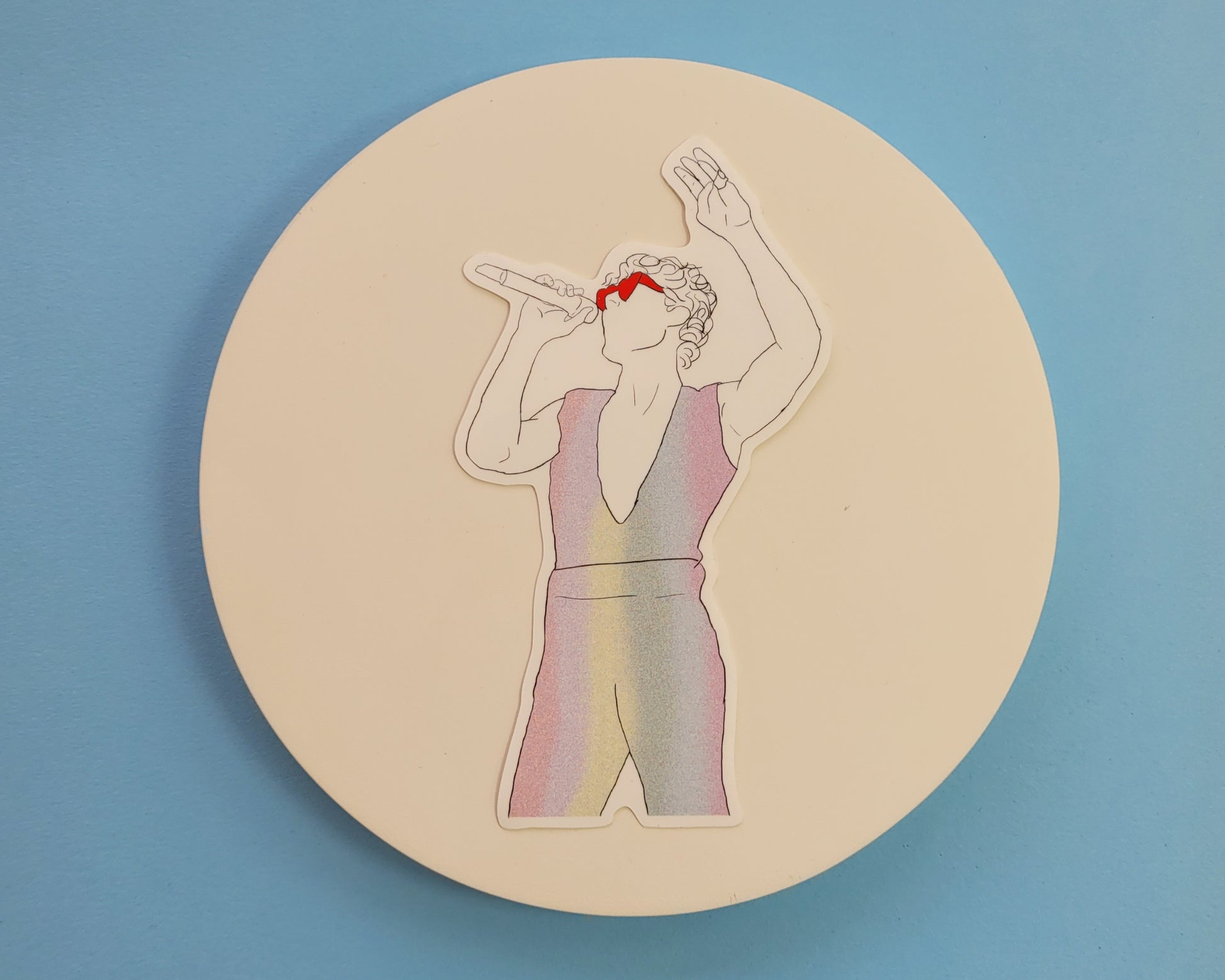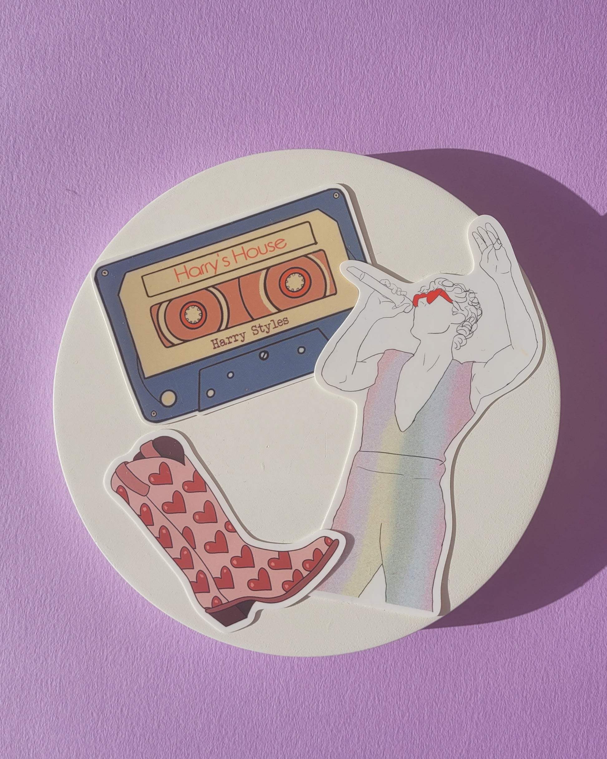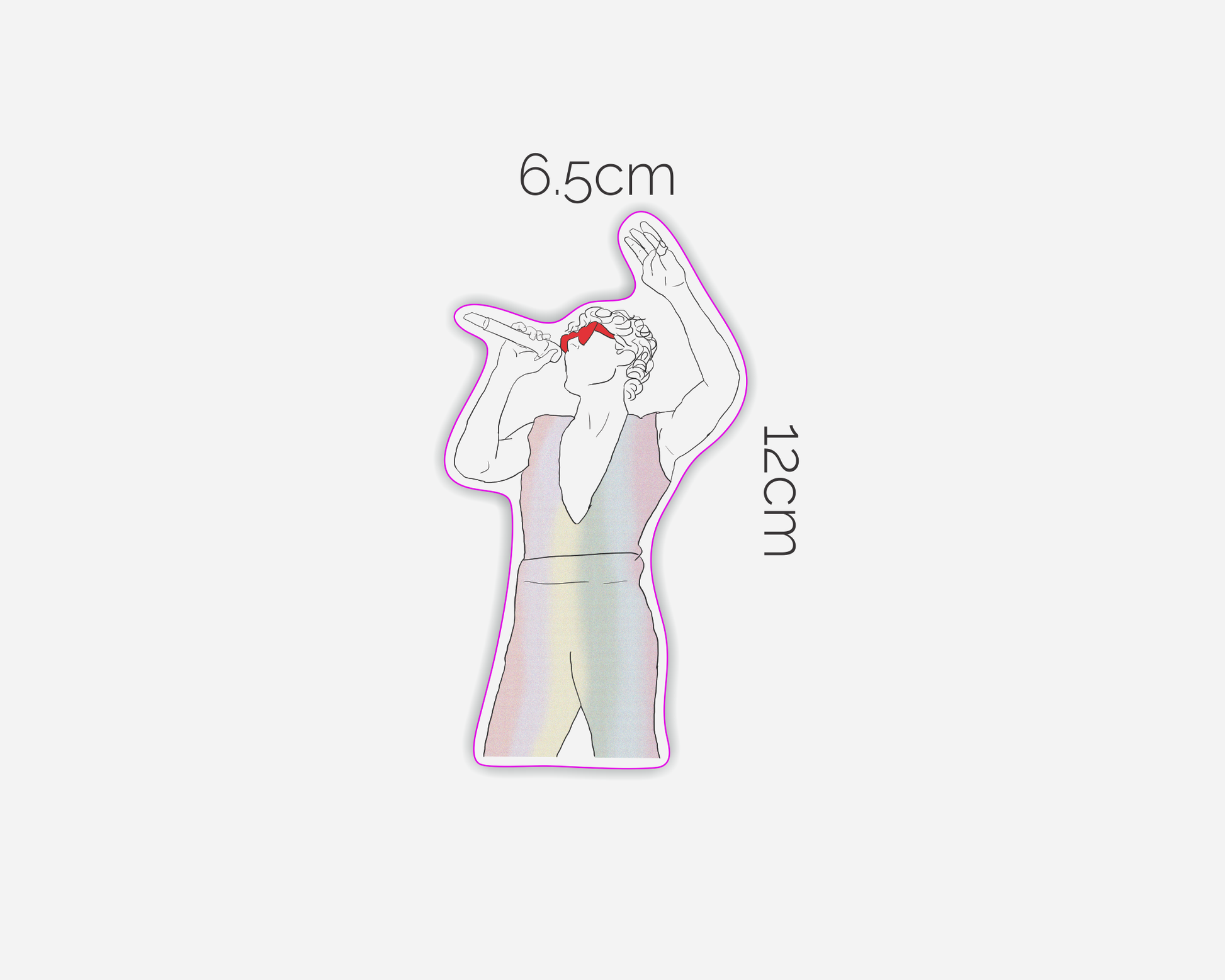The sticker is a vinyl sticker, that wont fade, can be drawn on top of, is waterproof and resistant to scratches. Medium strength adhesive will stick to most surfaces, will not leave any residue after use. The longest side is 12cm, and shortest 6.6cm for each sticker.