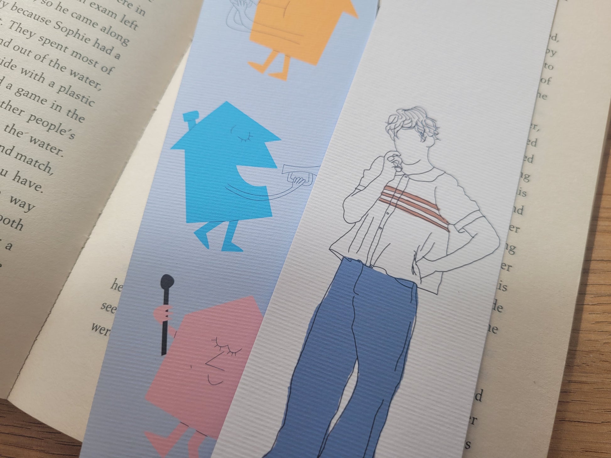 All bookmarks are printed on textured 280gsm paper, and are roughly 21cm x 5cm.