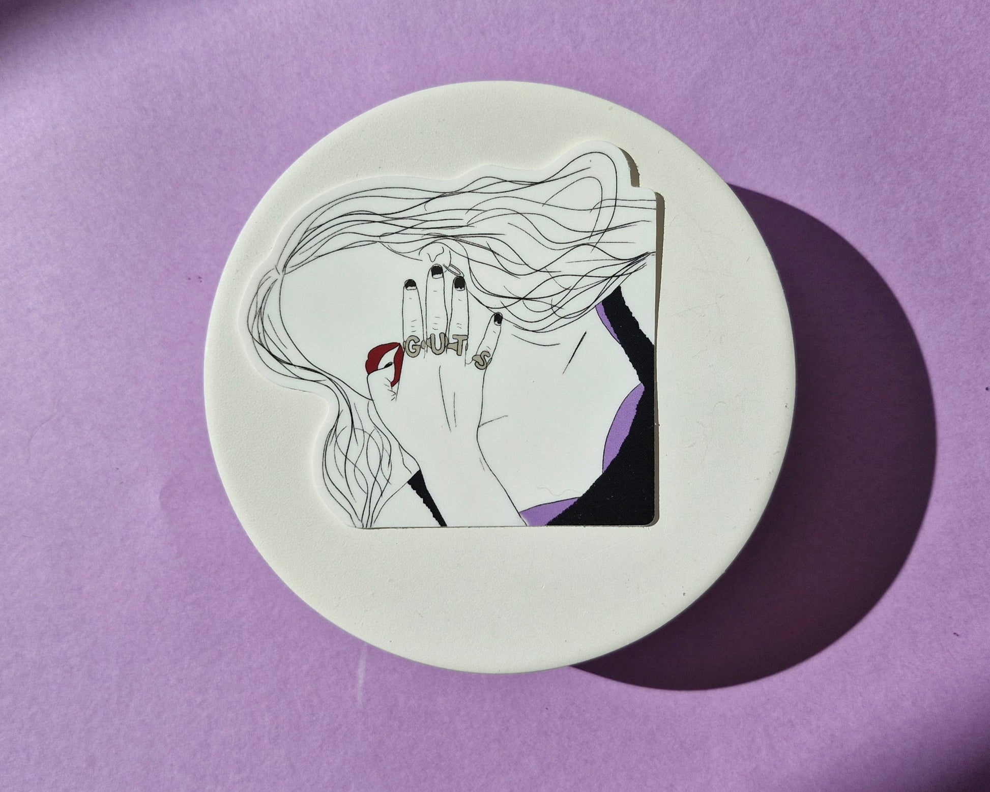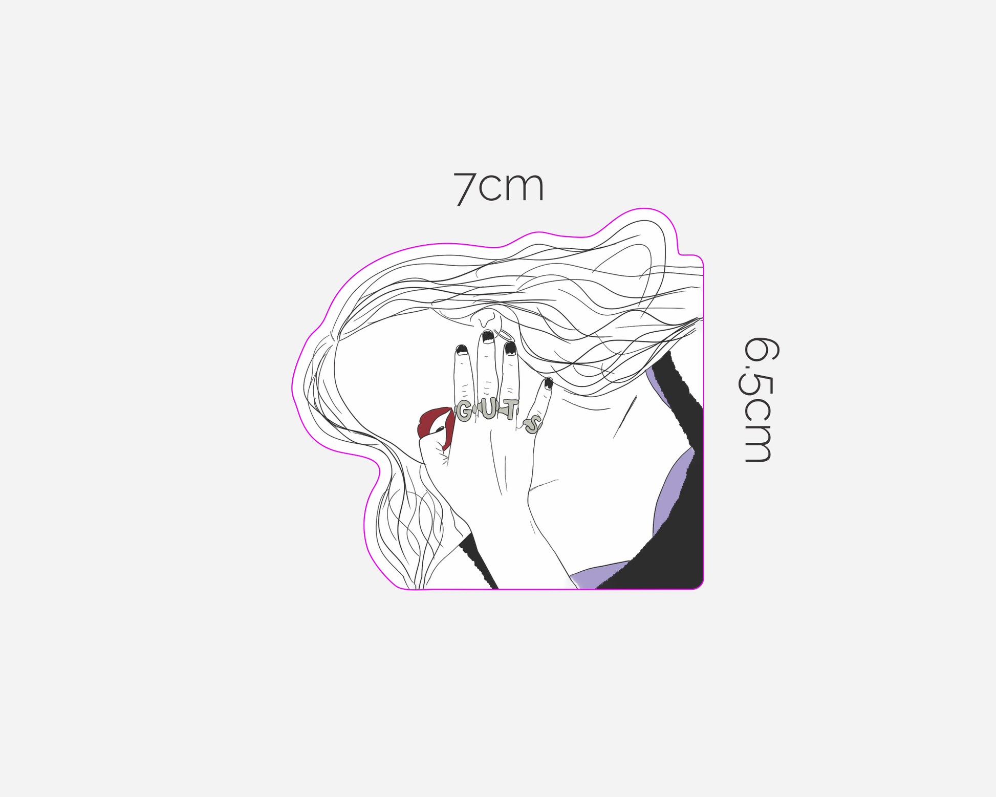 The sticker is a vinyl sticker, that wont fade, can be drawn on top of, is waterproof and resistant to scratches. Medium strength adhesive will stick to most surfaces, will not leave any residue after use. The longest side is 7cm, and shortest 6.5cm for each sticker.