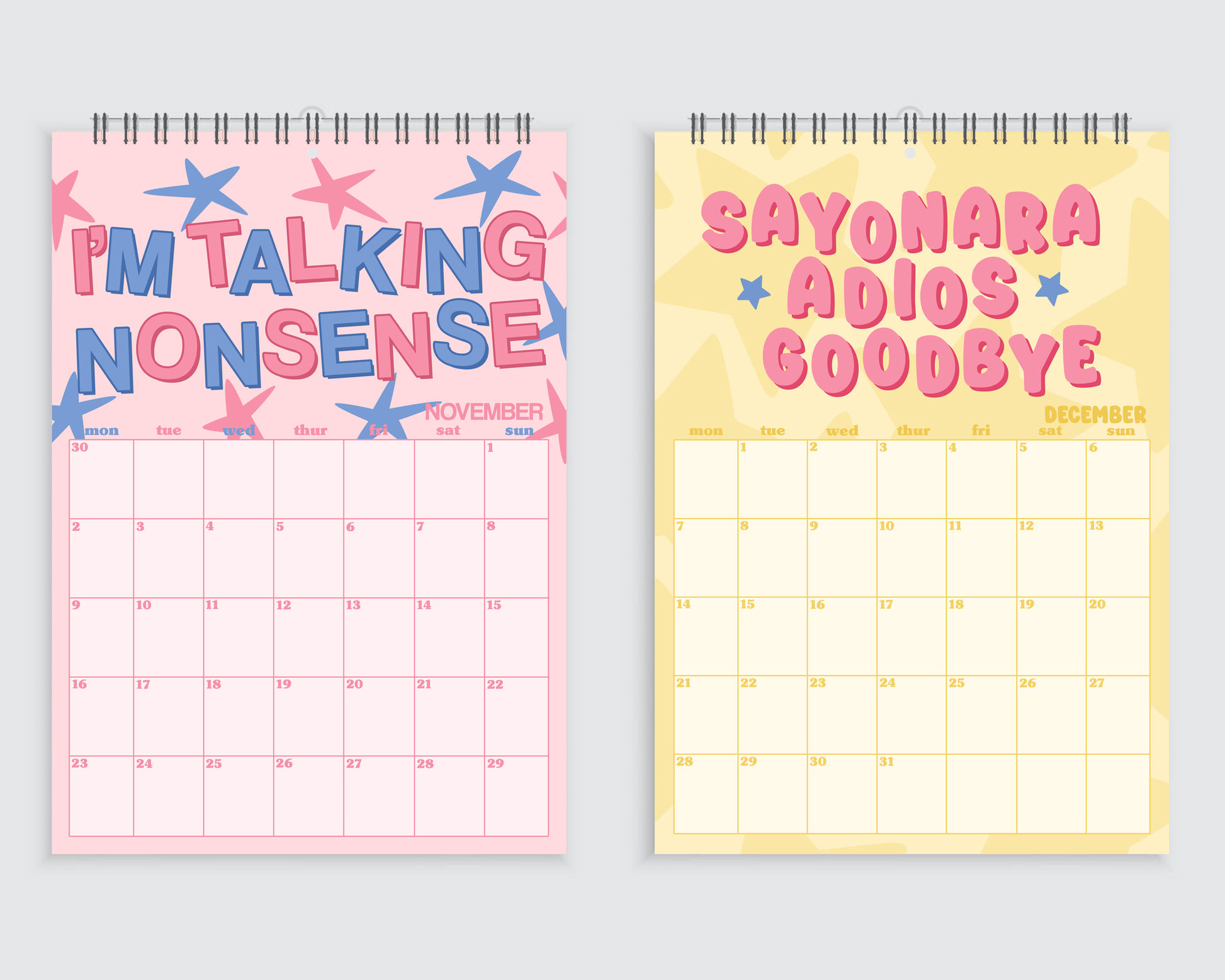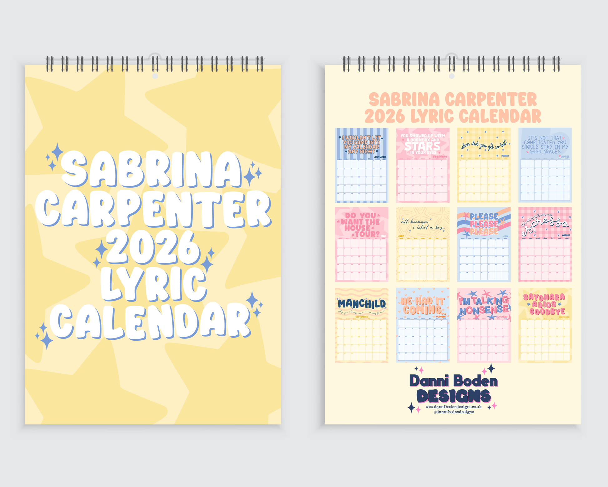 Sabrina Carpenter 2026 Lyric Wall Calendar - A4