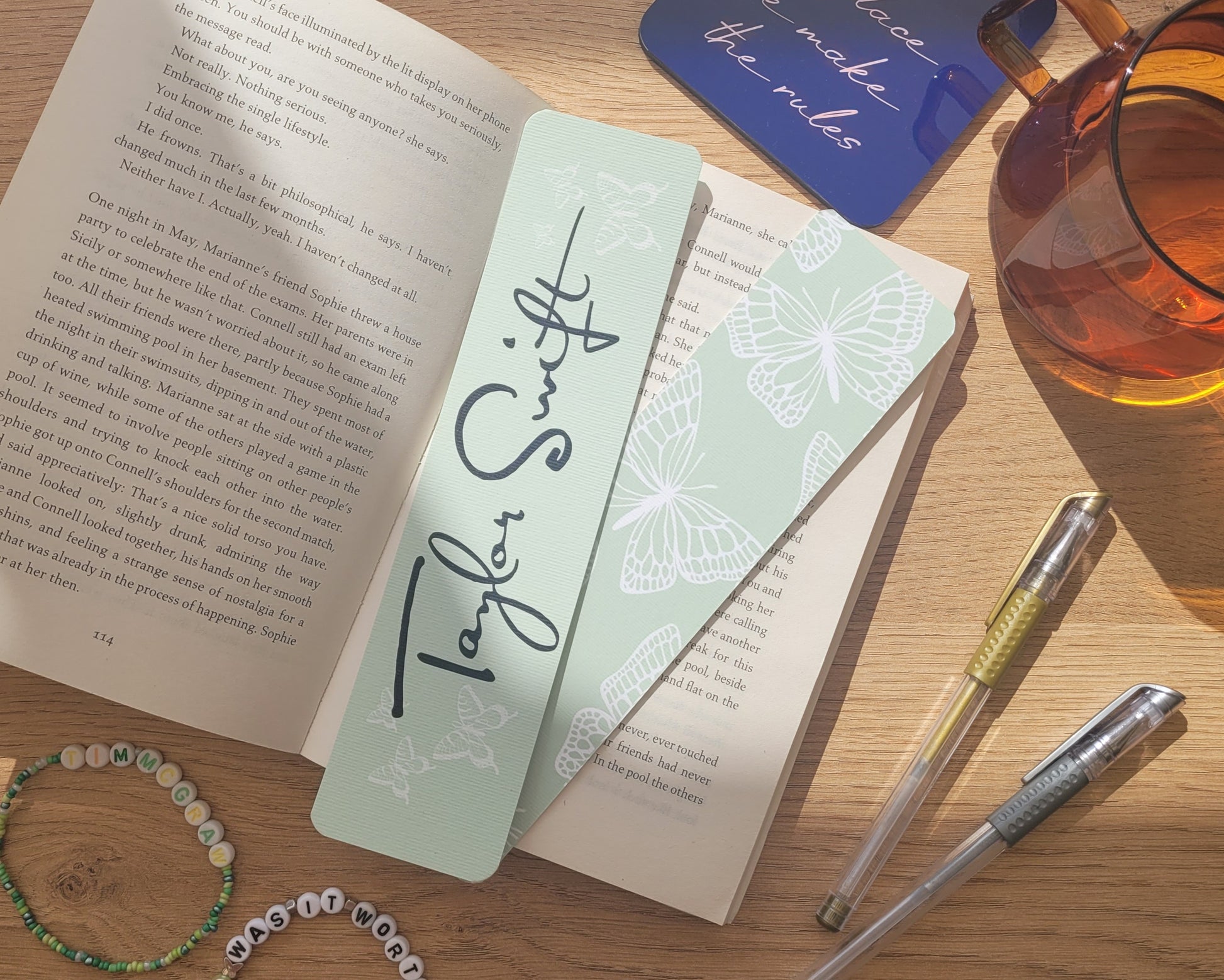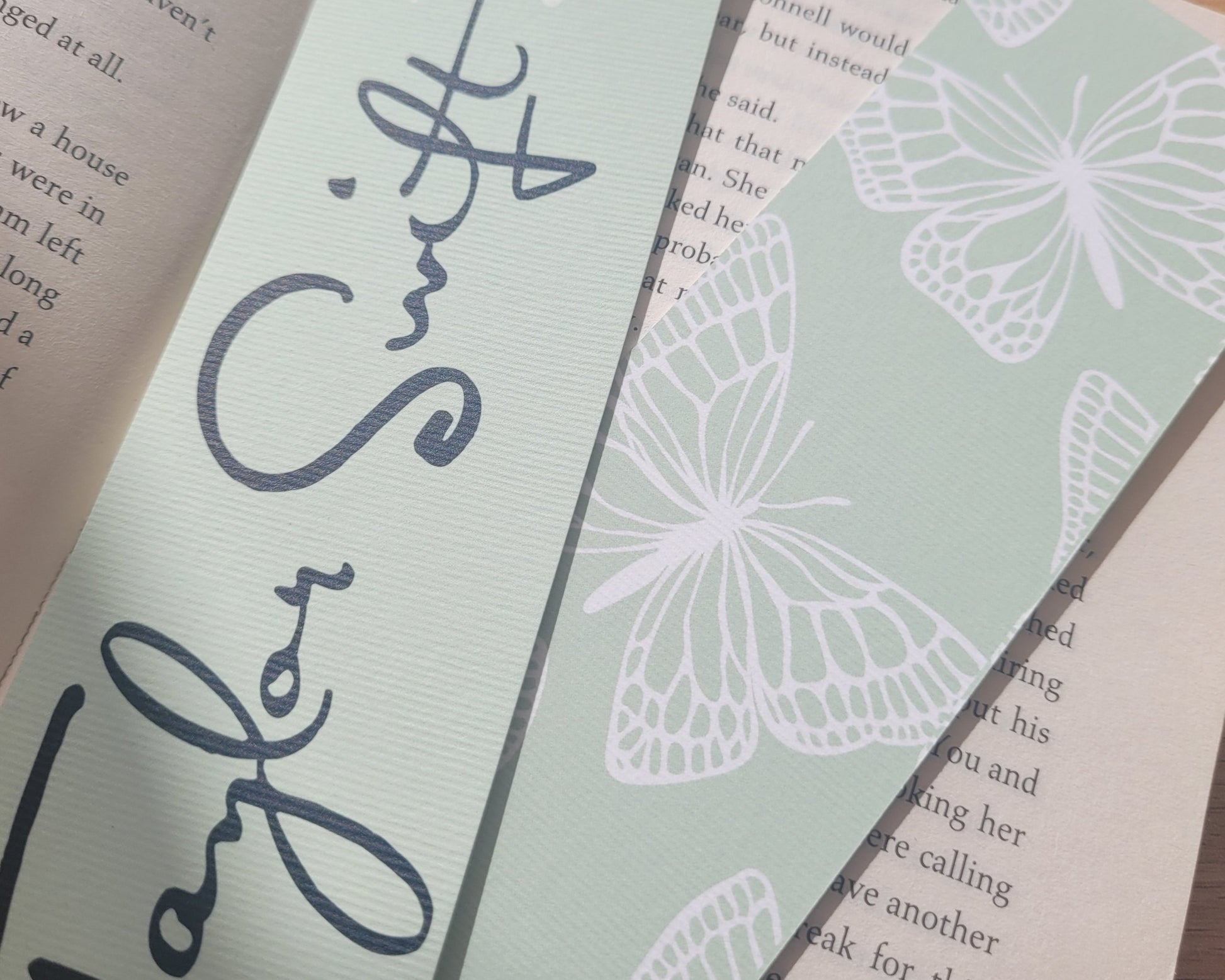All bookmarks are printed on textured 280gsm paper, and are roughly 21cm x 5cm.