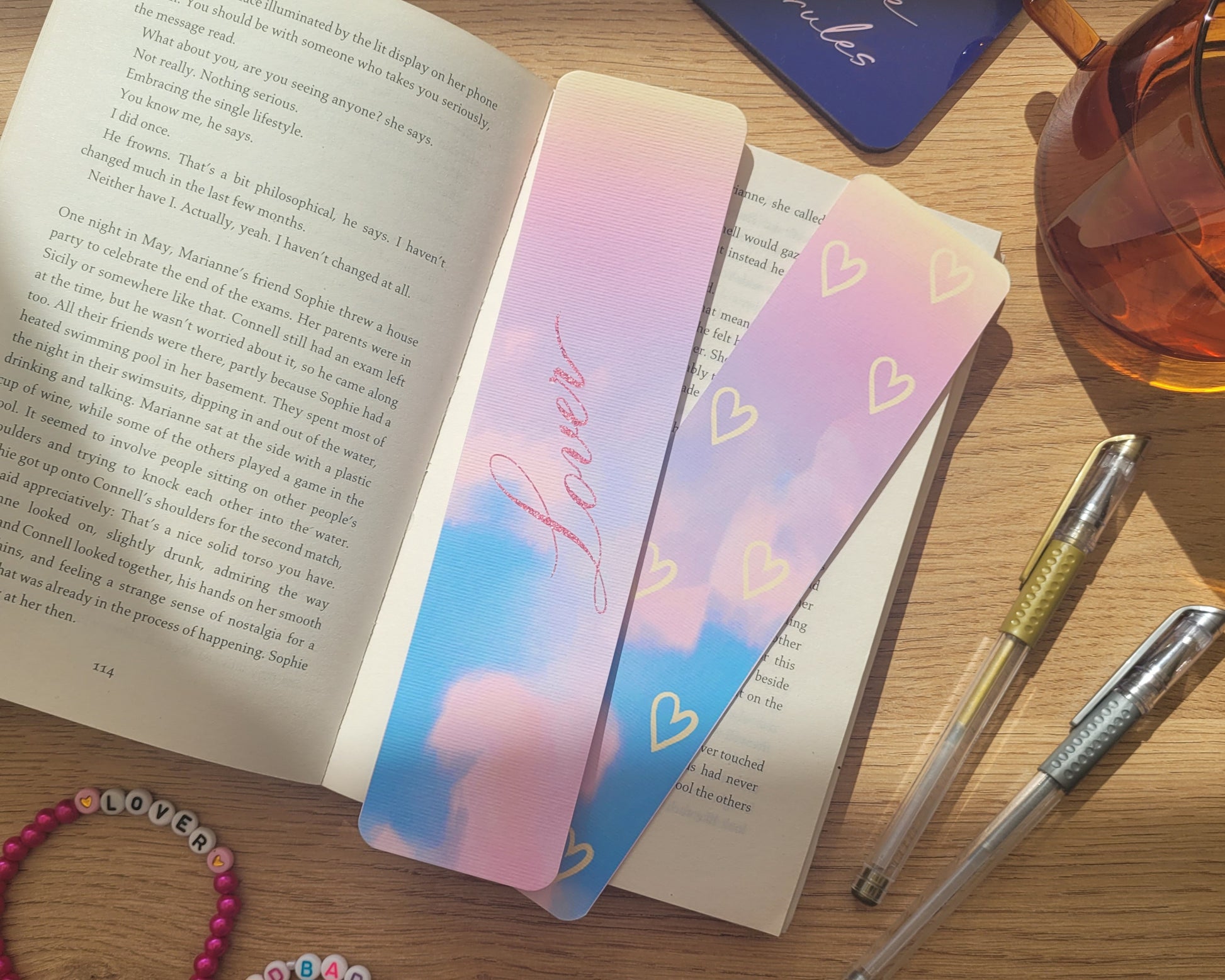 All bookmarks are printed on textured 280gsm paper, and are roughly 21cm x 5cm.