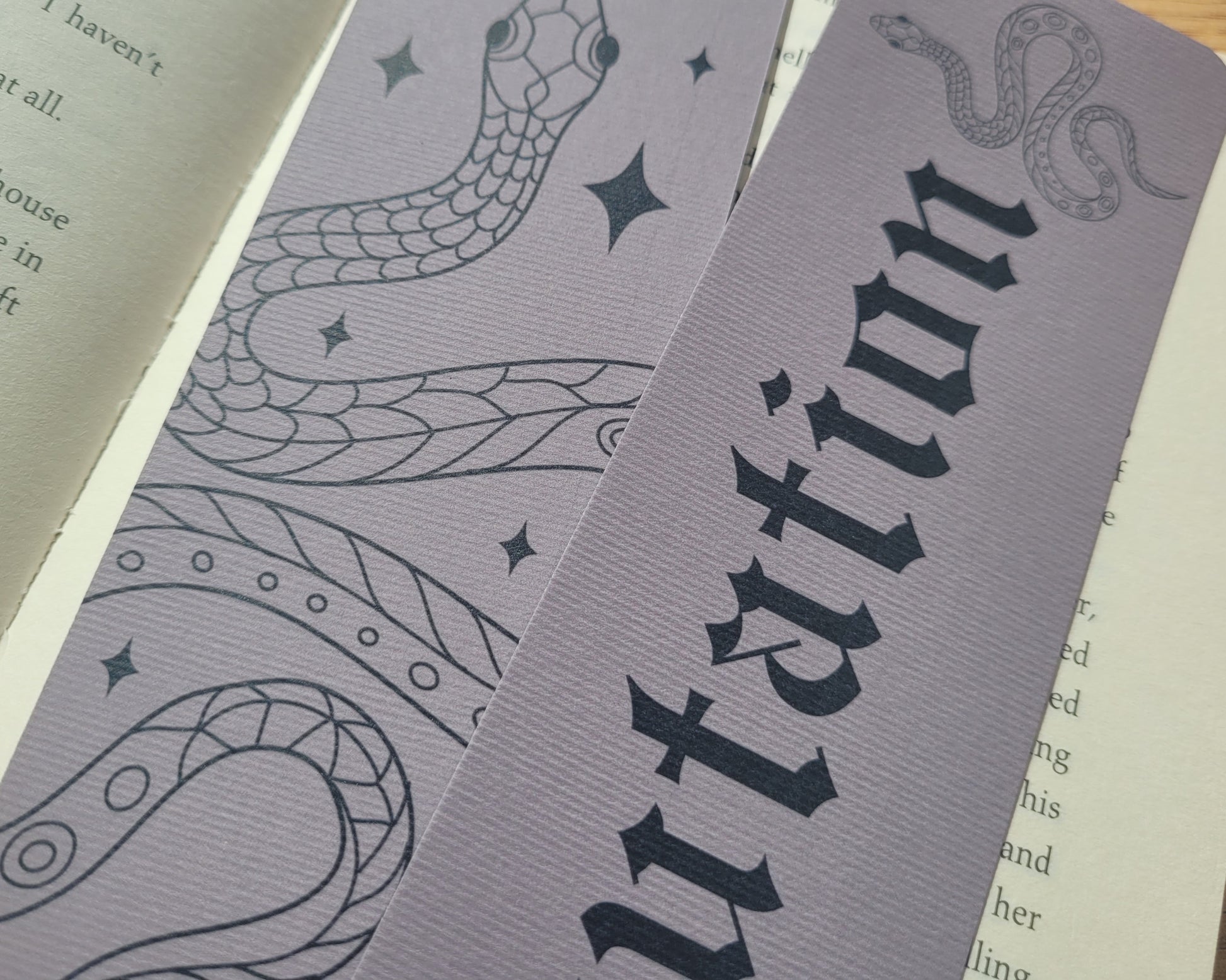 All bookmarks are printed on textured 280gsm paper, and are roughly 21cm x 5cm.