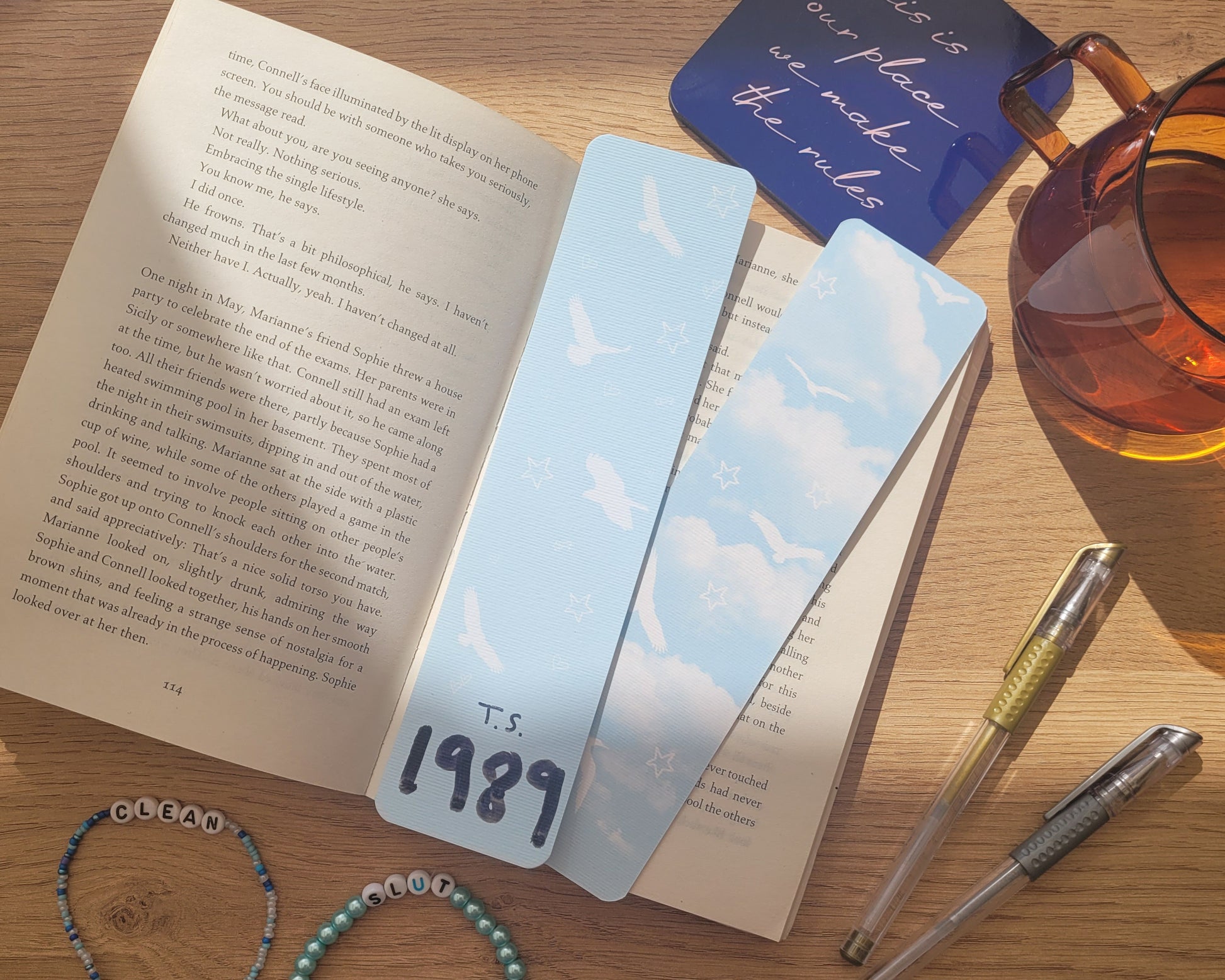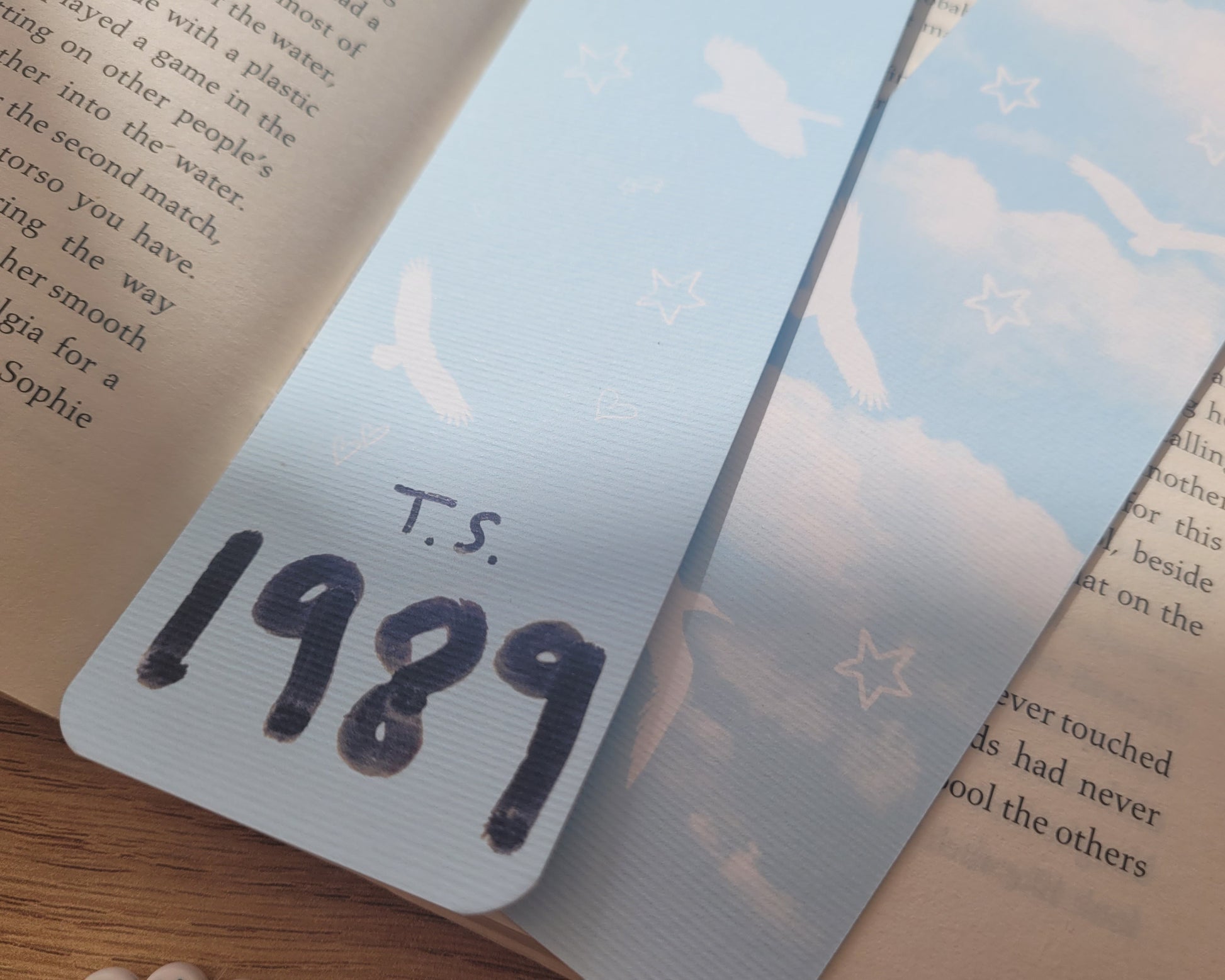 The bookmarks have designs on both sides as shown in the images. The front being 1989, and the back featuring icons that represent the album.